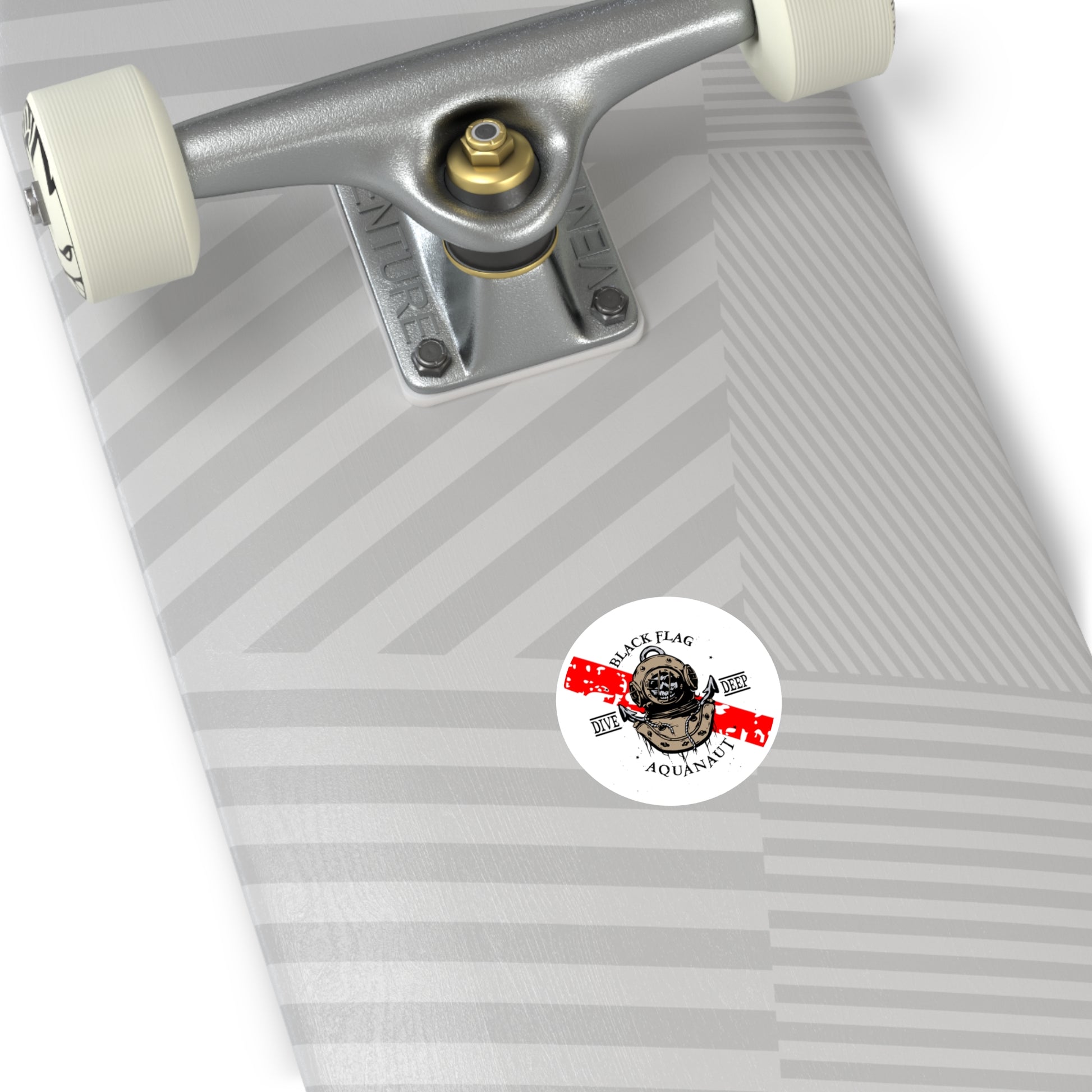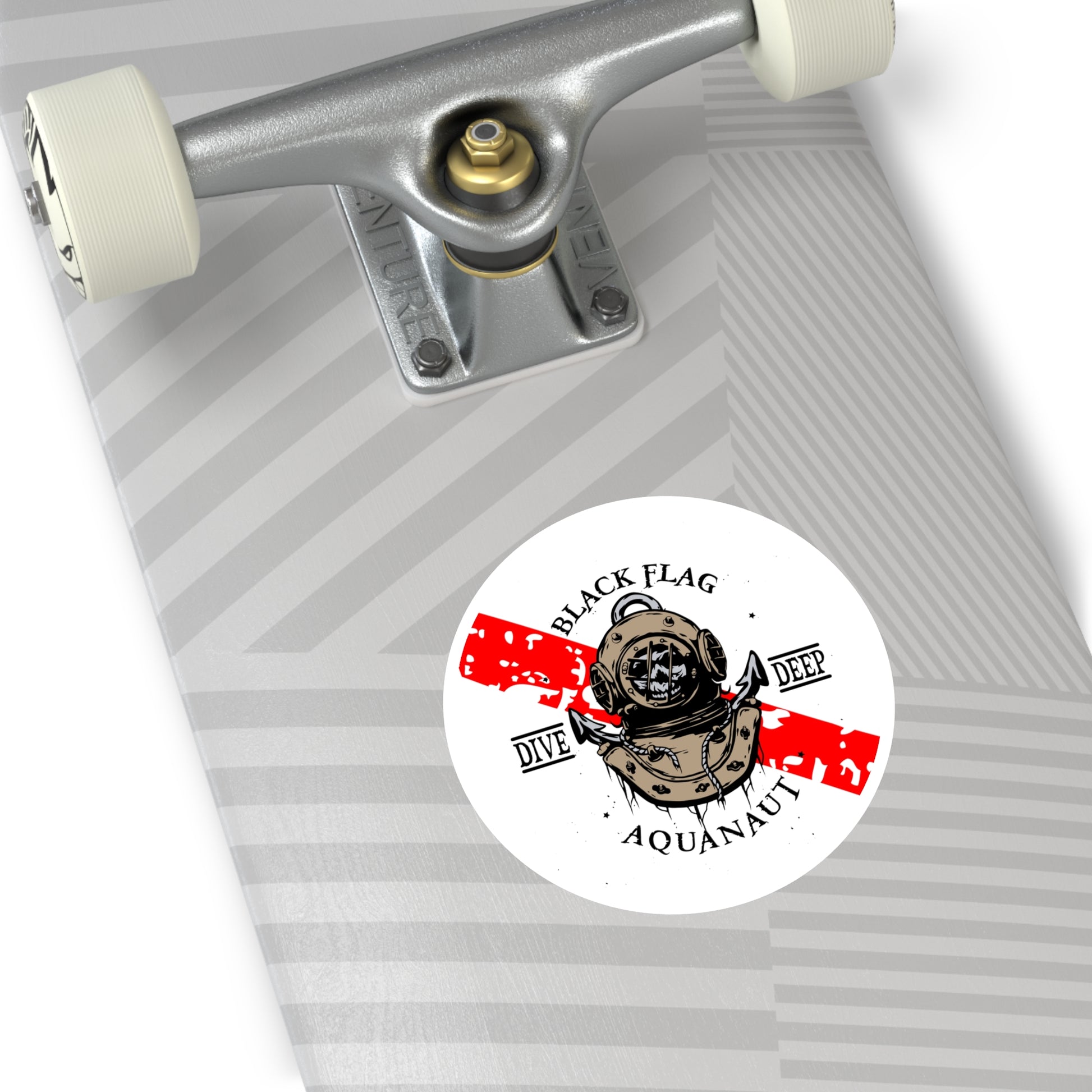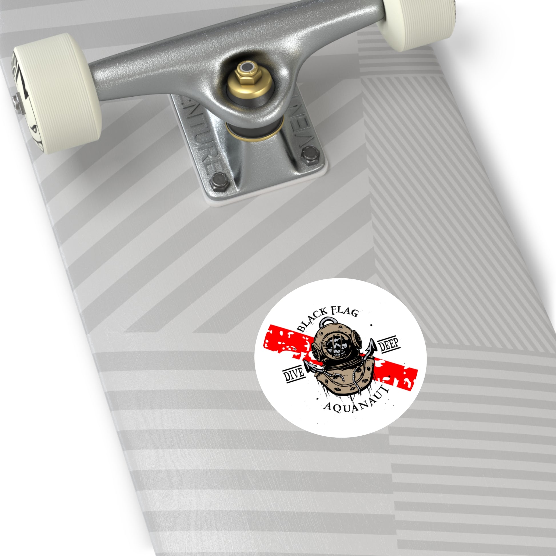 Black Flag Dive Center Round Sticker — Scuba Diver Helmet Octopus Design (Indoor/Outdoor)